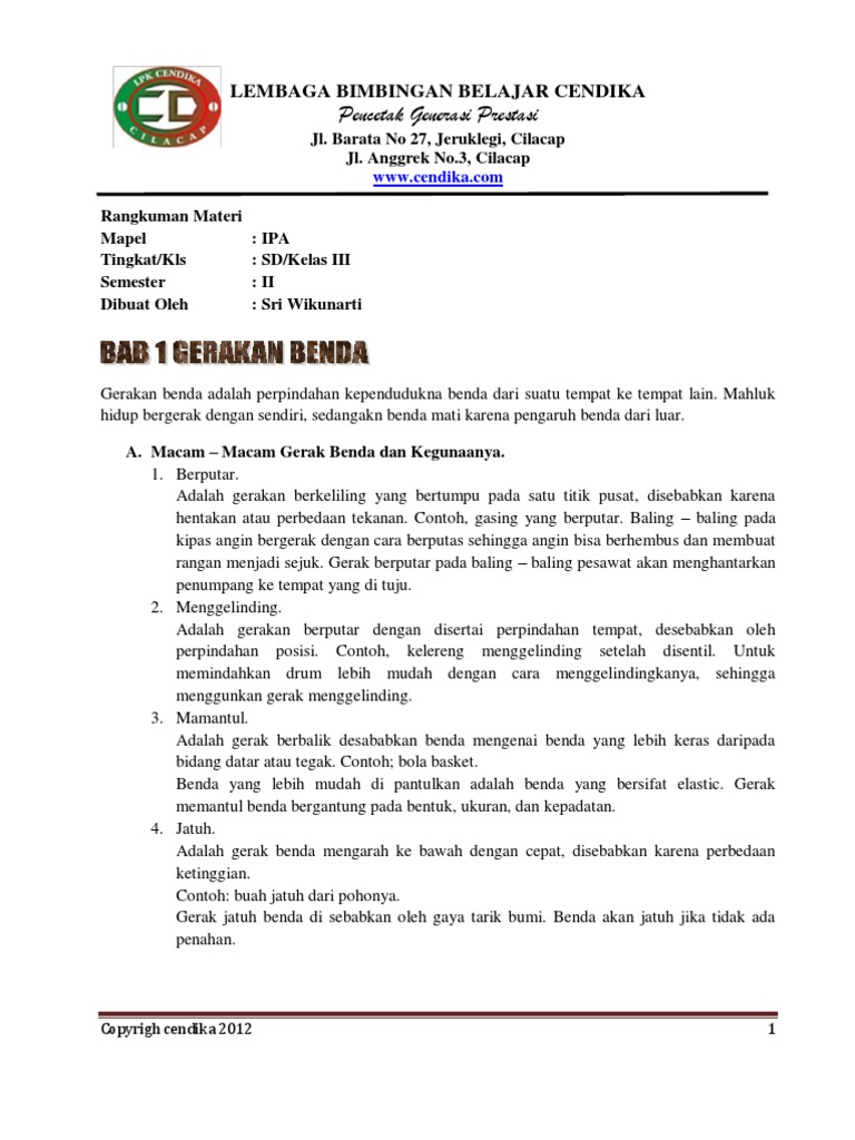Materi Ipa Gerak Sd Kelas 3 Sd Semester 2 Authorstream