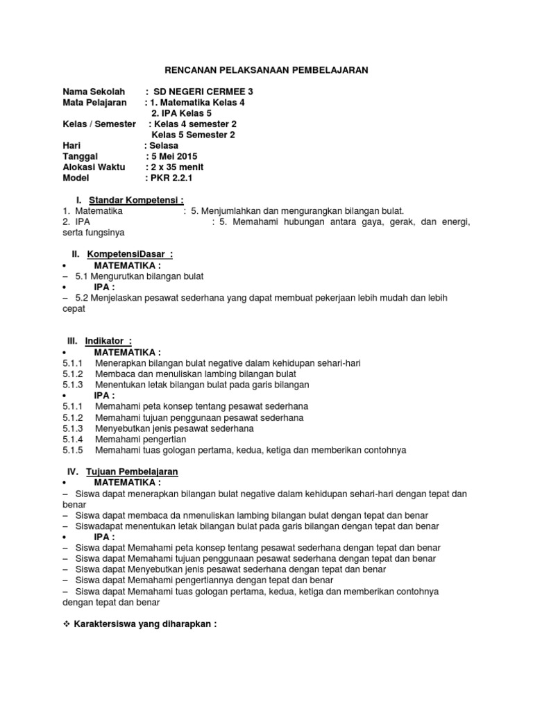 Rpp Ipa Berkarakter Kelas 4 Sd Semester 2