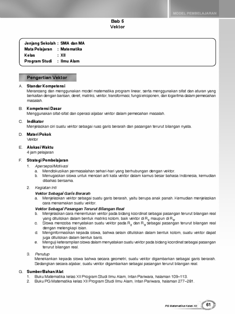 Rpp Matematika Sma Xii Peminatan Bab 2 Vektor