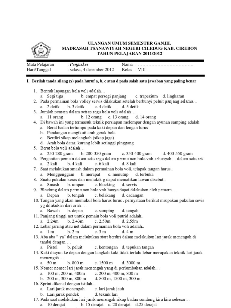 Lengkap 45 Contoh Soal Uts Penjaskes Kelas 8 Smp Mts Semester