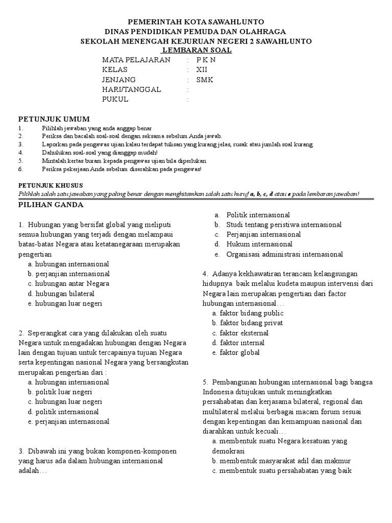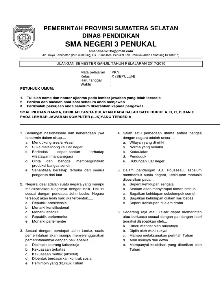 Soal Ppkn Kelas Xii Pkn Efistori Semester 6