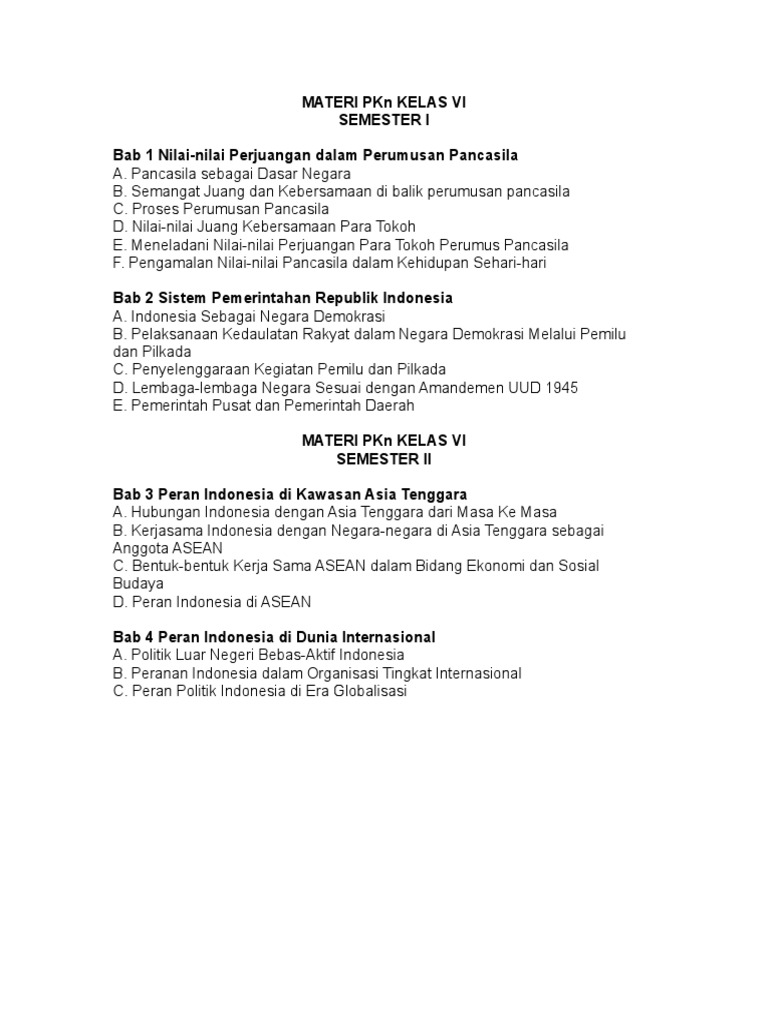 Materi Pelajaran Pkn Kelas 6 Semester 1 2 Lengkap