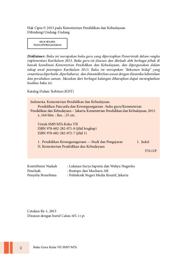 Buku Guru Pkn Kelas Vii Smp Kurikulum 2013