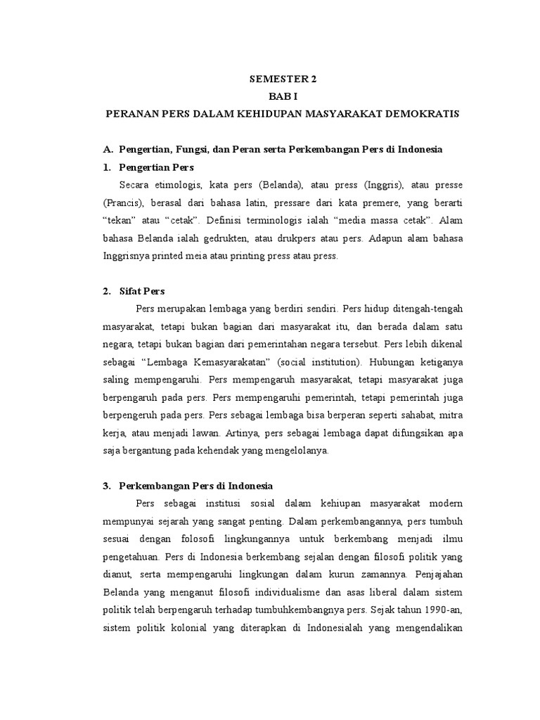 Makalah Peran Pers Dalam Masyarakat Demokrasi Makalah Pkn Makalah Ku