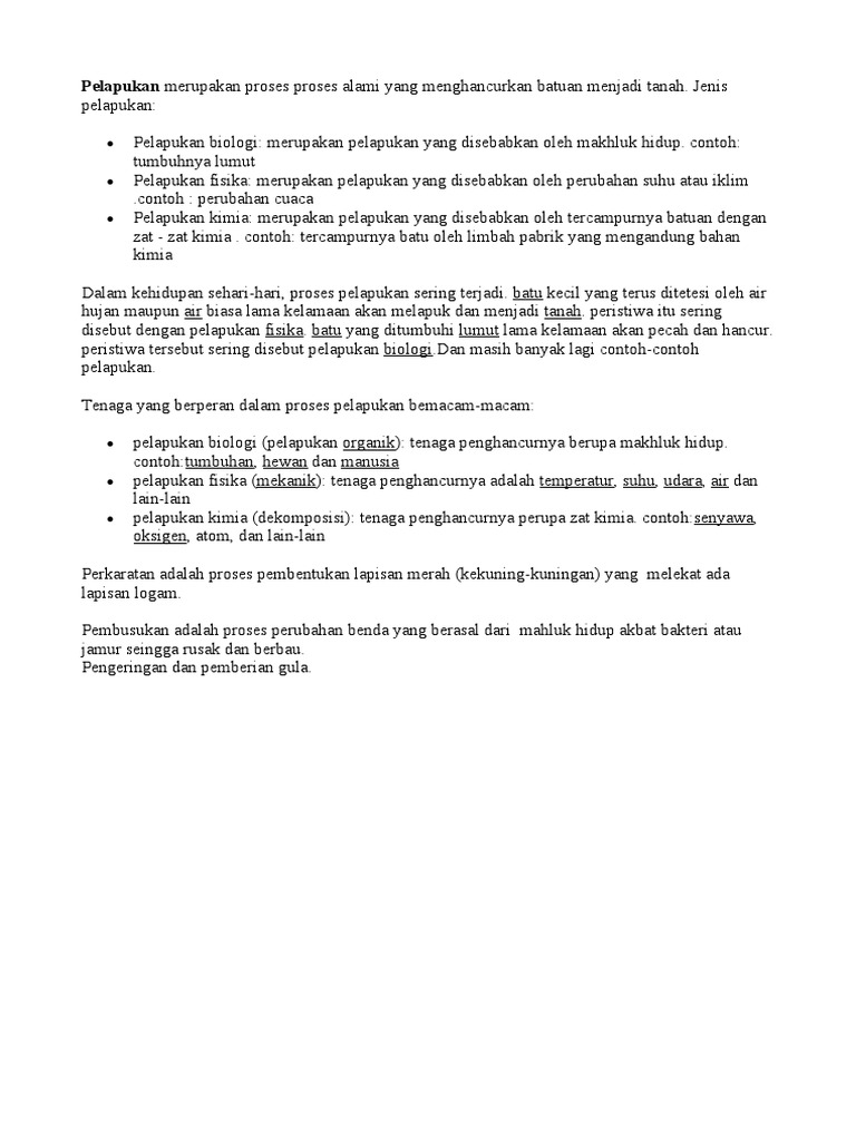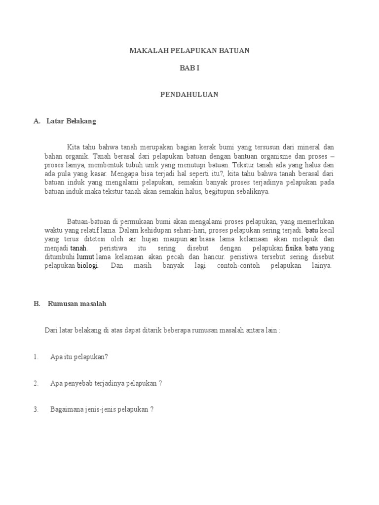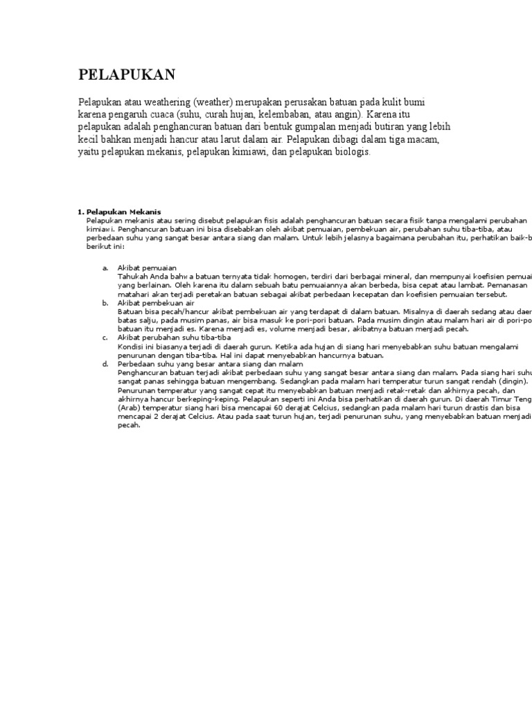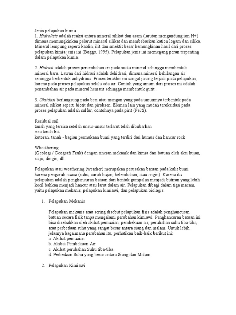 Pelapukan adalah proses alterasi dan fragsinasi batuan dan material tanah pada danatau dekat permukaan bumi yang disebabkan karena proses fisik kimia dan biologi. Indonesia merupakan negara agraris karenasebagian besar penduduknya bekerja disektor pertanian.