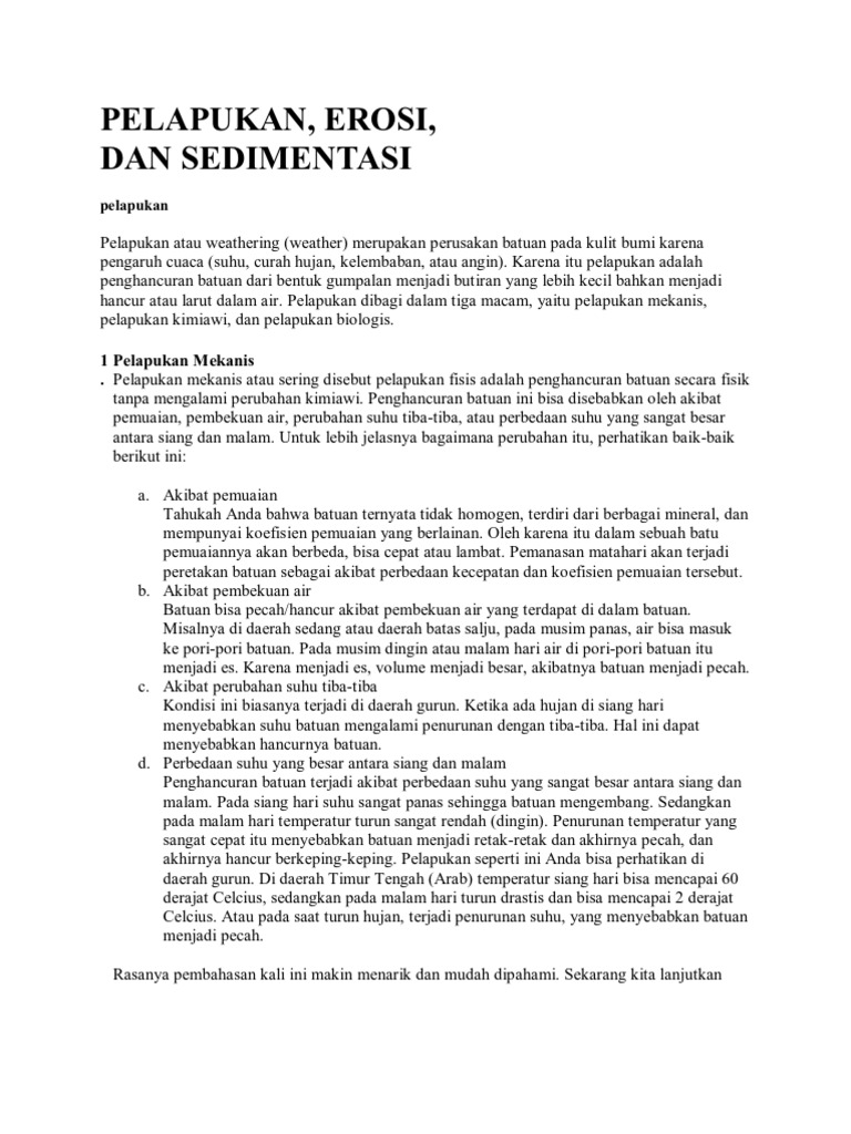 Geografi Kelas 10 Tenaga Eksogen Pelapukan Erosi Sedimentasi