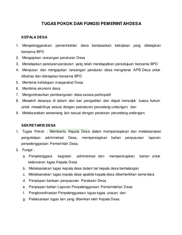 Tugas Pokok Dan Fungsi Pemerintah Desa