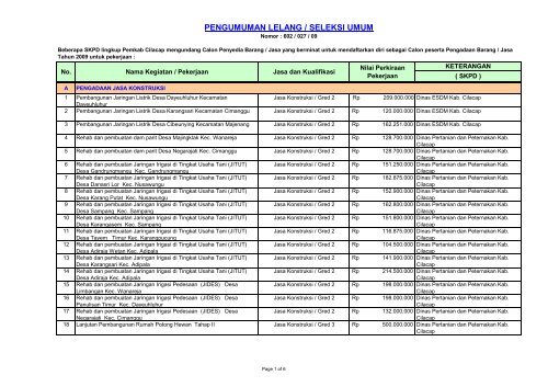 Pengumuman Lelang Seleksi Umum Pemerintah Kabupaten Cilacap