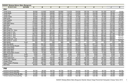 Ssh Bahan Bangunan Pemerintah Kabupaten Cilacap