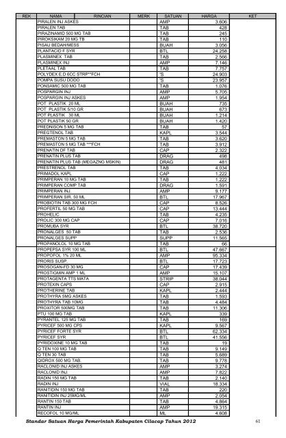 Standar Satuan Harga Kegiatan Pemerintah Kabupaten Cilacap