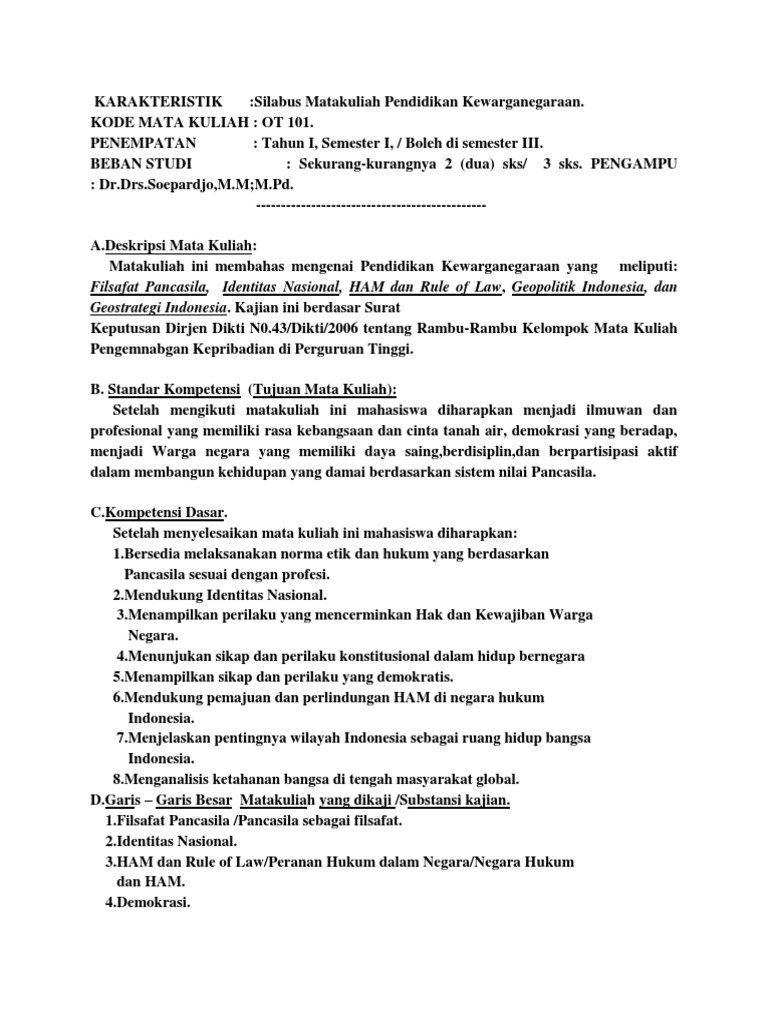 Pendidikan Kewarganegaraan Kode Mk Uno 101 Sks 3 3 0 Ppt