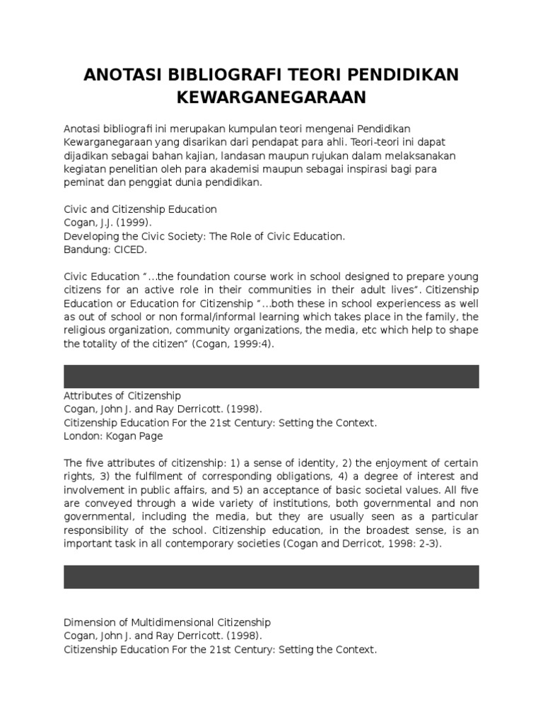 Anotasi Bibliografi Teori Pendidikan Kewarganegaraan Citizenship