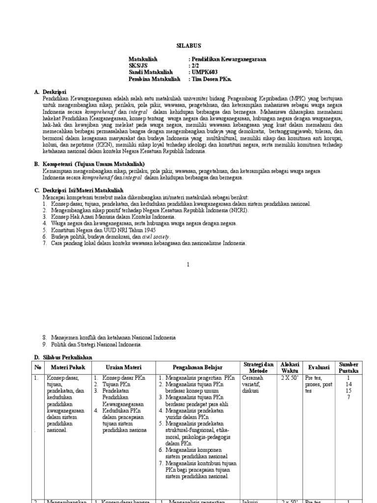 Silabus Pendidikan Kewarganegaraan 2
