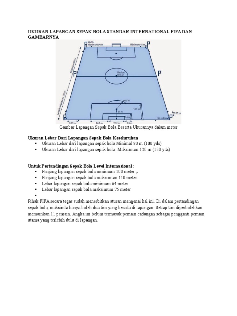 Ukuran Lapangan Sepakbola Standar Nasional Fifa Internasional