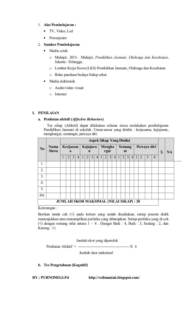 Rencana Pembelajaran Penjas Smk Sma Semester Ii Perangkat Penjas