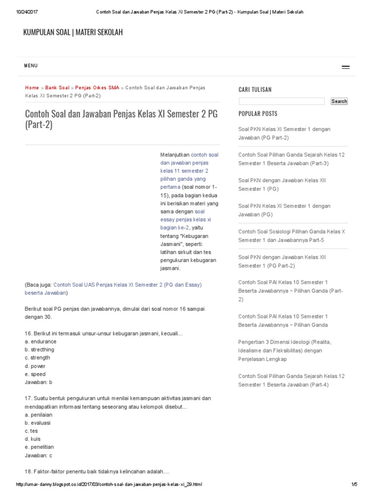 Contoh Soal Dan Jawaban Penjas Kelas Xi Semester 2 Pg Part 2