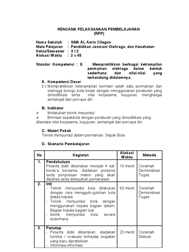 Rpp Pjok Penjas Kelas 1 Sd Mi Kurikulum 2013