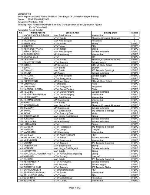 Daftar Nama Peserta Pendidikan Dan Latihan Sertifikasi Guru Unp Ac