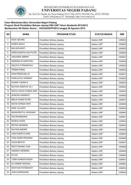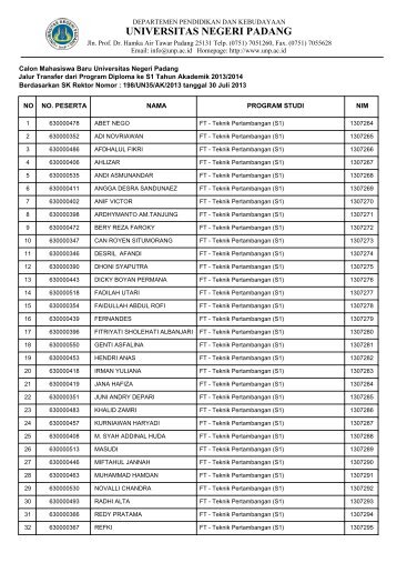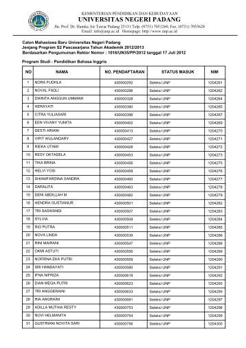 Calon Mahasiswa Yang Dinyatakan Lulus Universitas Negeri Padang