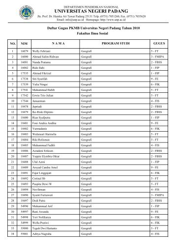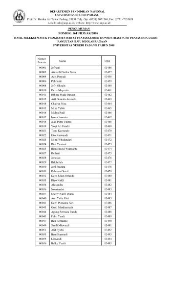 Passing grade unp universitas negeri padang 2019 hampir seluruh siswa sma yang akan mengikuti sbmptn 2018 mendatang percaya bahwa passing grade merupakan salah. Kumpulan skripsi penjaskesrek unp kediri 2011 judul skripsii sepak bola skripsi penjaskes unp kediri. Fikunpacid padang berkat dukungan upaya semangat dan kerja keras dari seluruh tim penyusun borang akreditasi yang telah mempersiapkan seluruh berkas borang.
