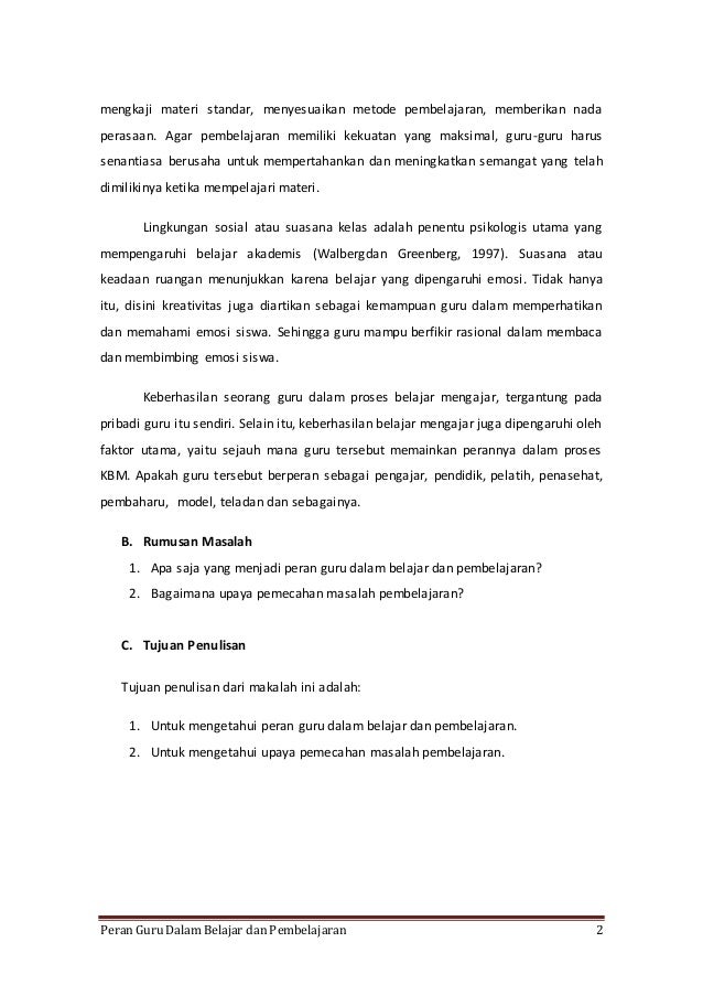 Peran Guru Dalam Belajar Dan Pembelajaran Makalah Bdp