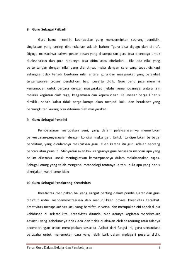 Peran Guru Dalam Proses Pembelajaran Guru Sebagai Pendidik Dan