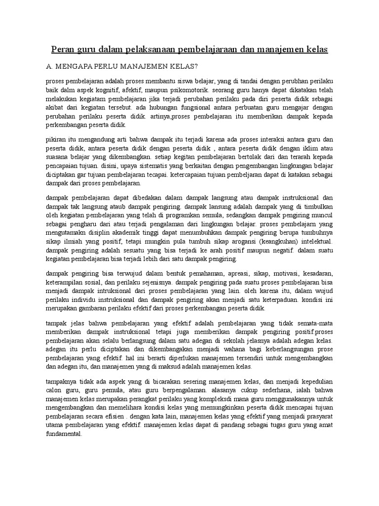 Peran Guru Dalam Pelaksanaan Pembelajaraan Dan Manajemen Kelas