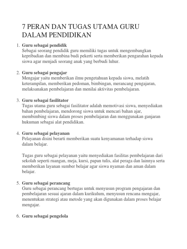 7 Peran Utama Dan Tugas Pokok Guru Dalam Pembelajaran Lengkap