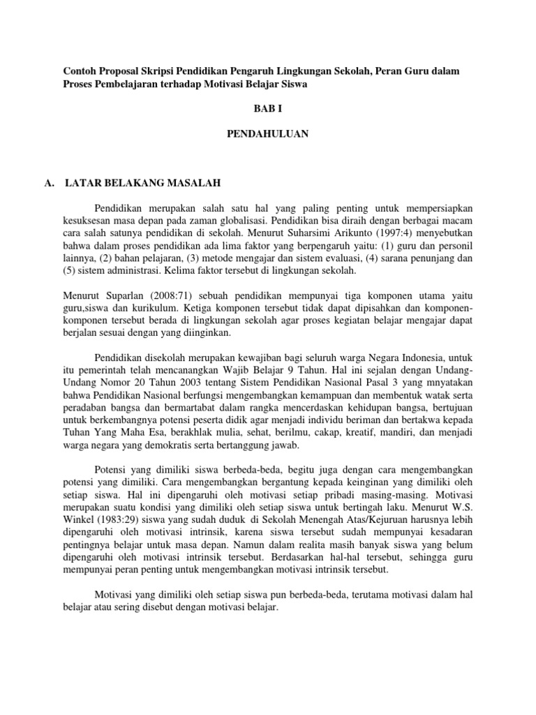 Contoh Proposal Skripsi Pendidikan Pengaruh Lingkungan Sekolah