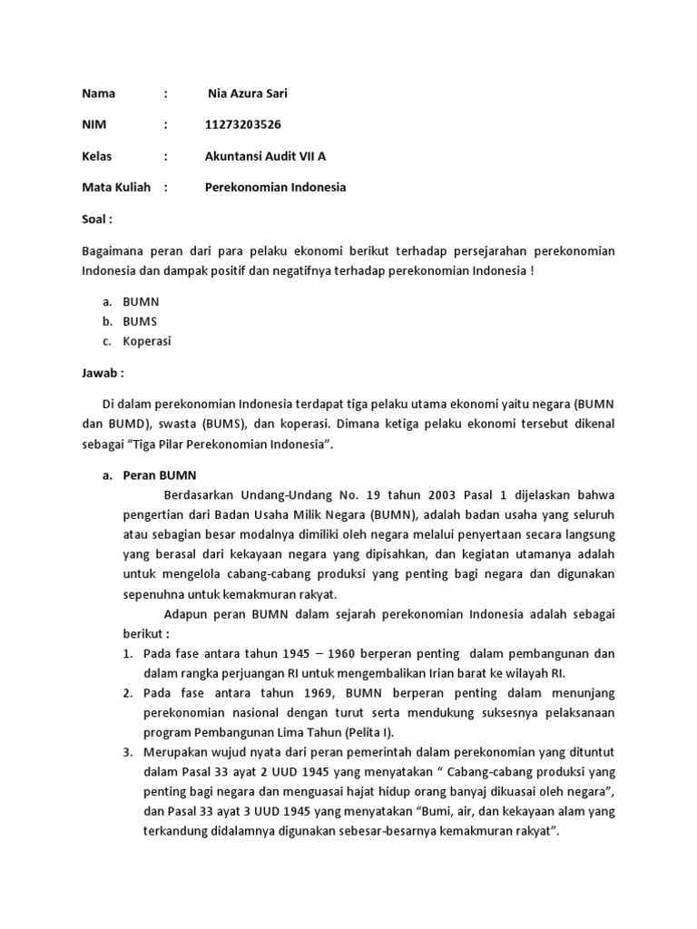 Tugas Individu Nia Azura Sari Peran Pelaku Ekonomi Docx