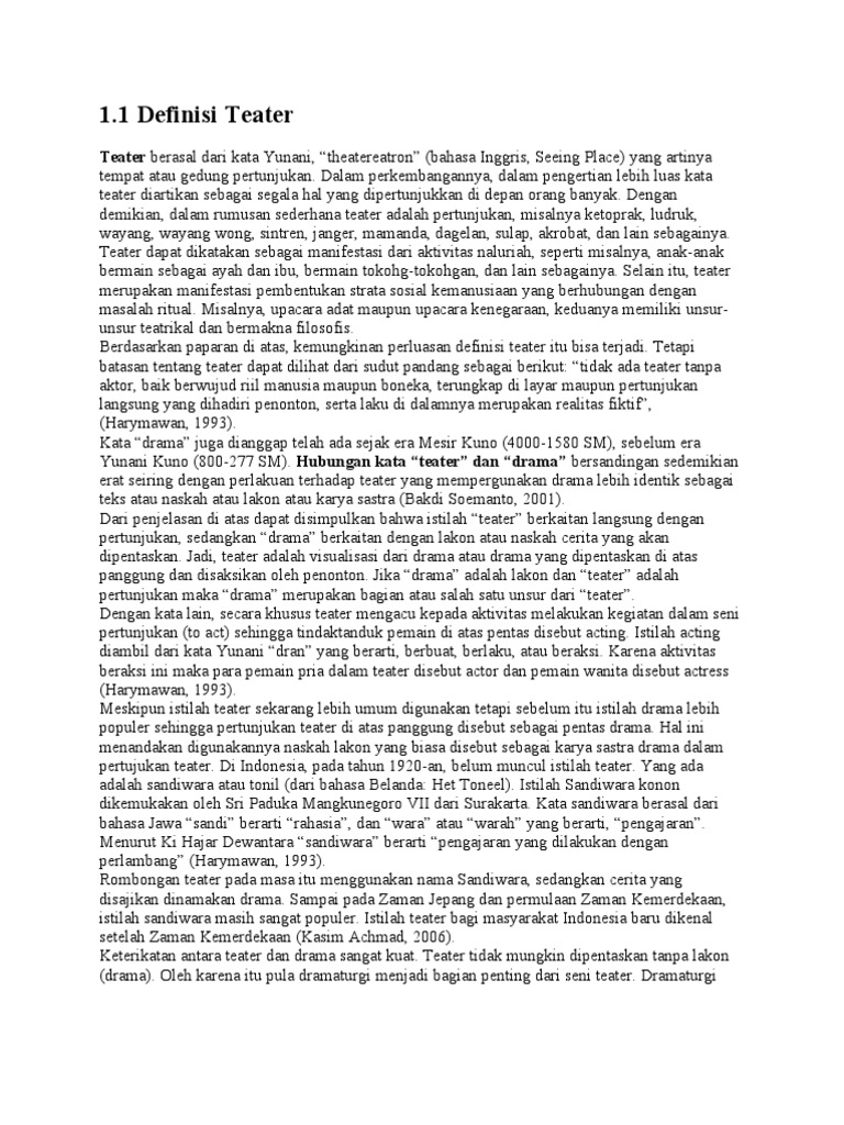 Doc Sejarah Perkembangan Drama Dan Teater Indonesia Oby Ee