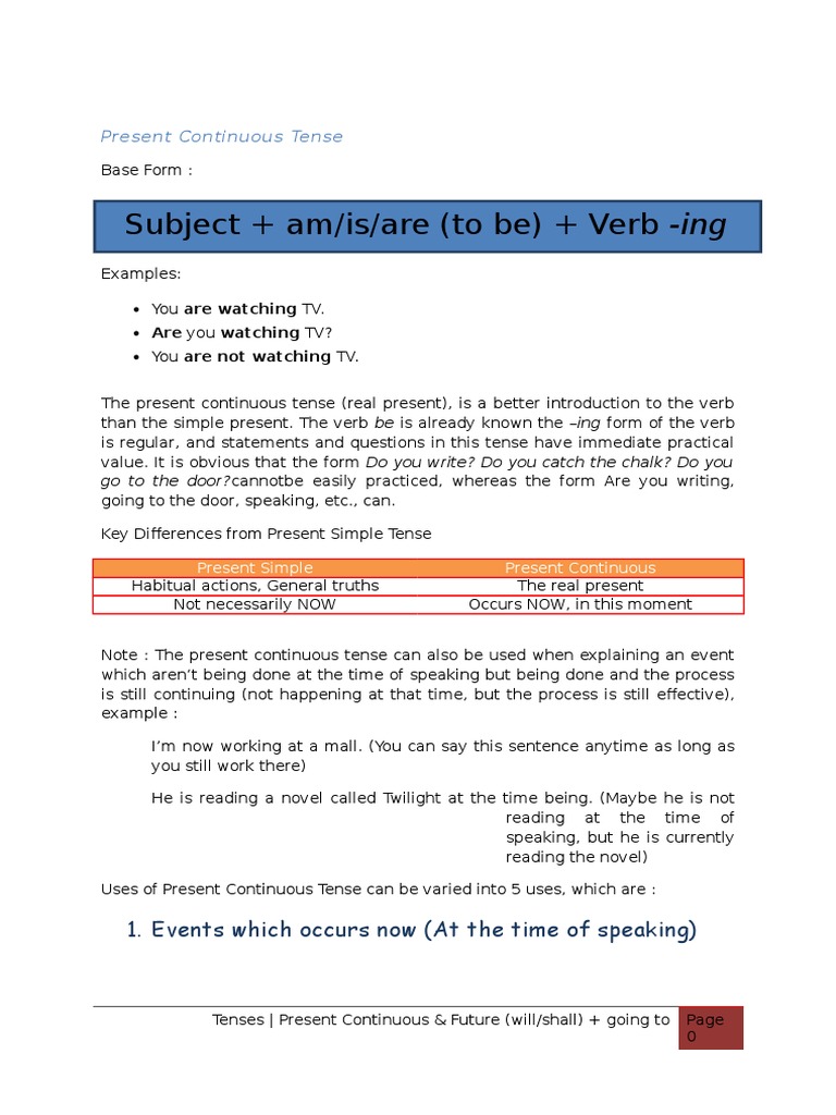 Present Continuous Verbs And Tenses