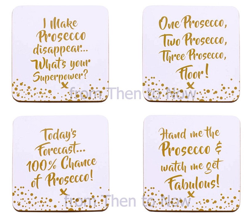 Set Of 4 Prosecco Coasters Drinks Mat Present Gift Funny Quote