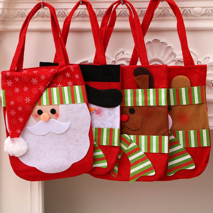 Christmas Fesival Gift Bag Four Types Santa Snowman Elk Bear Red