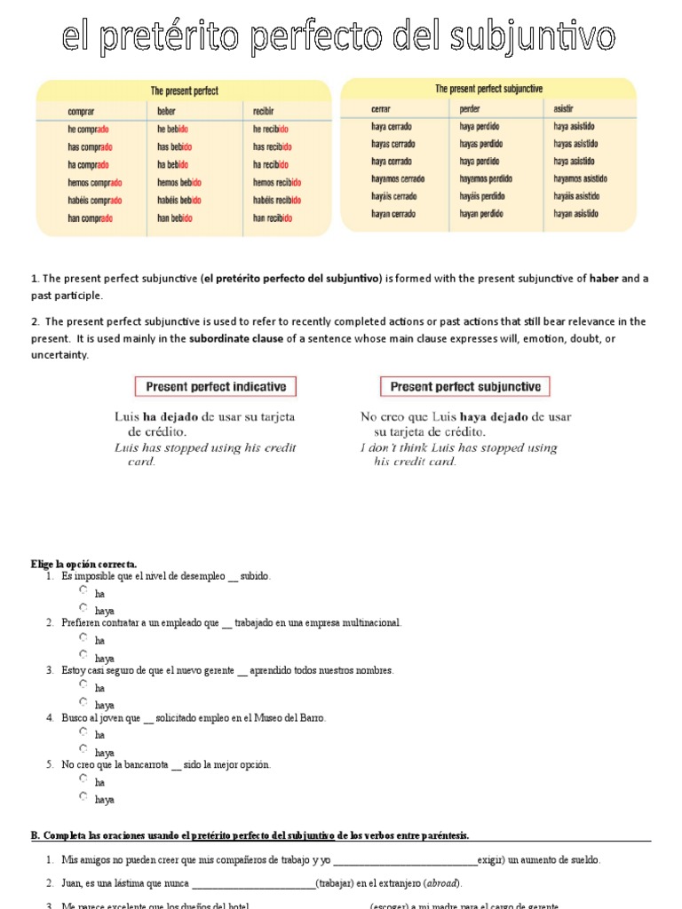 20 Best Espanol Present Perfect Subjunctive Images Present