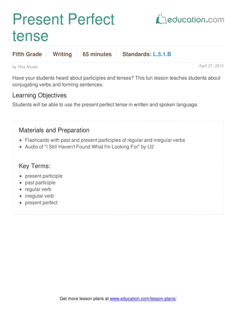 Topic Present Perfect Tense Lesson Goal Students Will Be Able