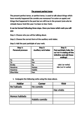 The Present Perfect Tense In Spanish My Mfl Box