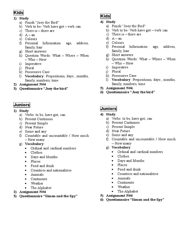 Juniors 2 Pe Level Links School Of English Present Simple Robert