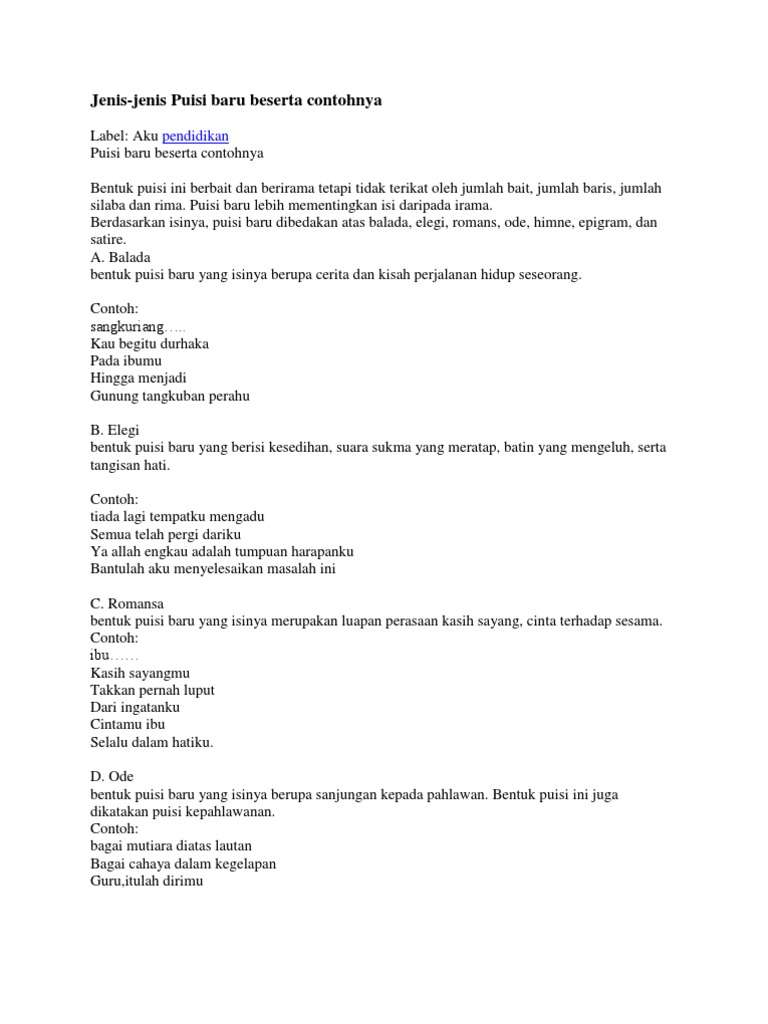 Calameo Pengertian Puisi Baru Beserta Contohnya