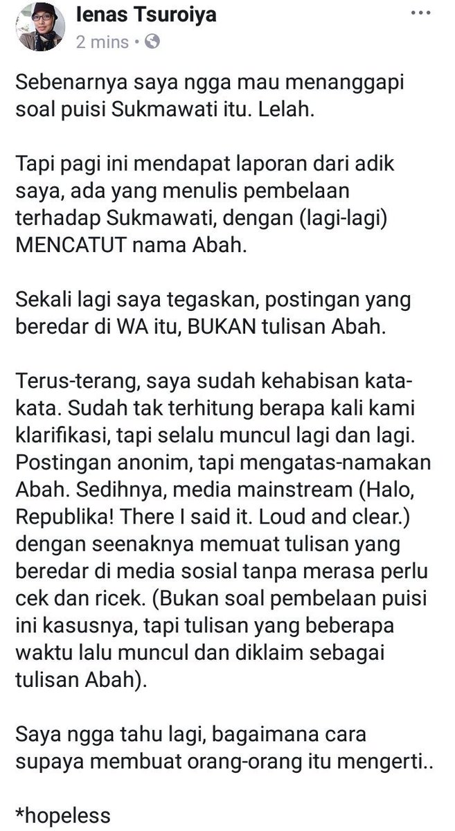 Netizen Hina Gus Mus Dengan Kata Kata Kasar Bikin Ngamuk Yang Lain