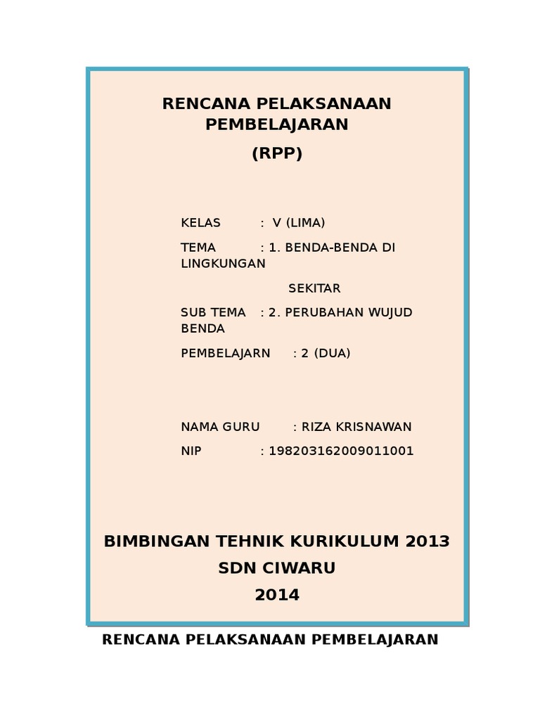1 Contoh Rpp Kelas 5 Kurikulum 2013