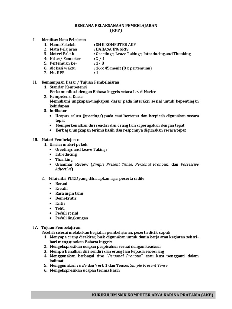 Contoh Rpp Bahasa Inggris Kurikulum 2013 Untuk Smk X Education