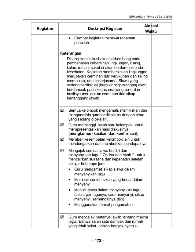 Rpp Tematik Sd Kelas 4 Semester 2 Tema Cita Citaku Subtema Aku Dan