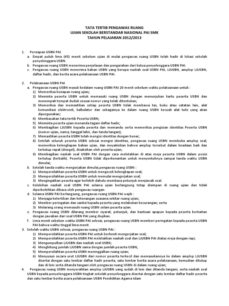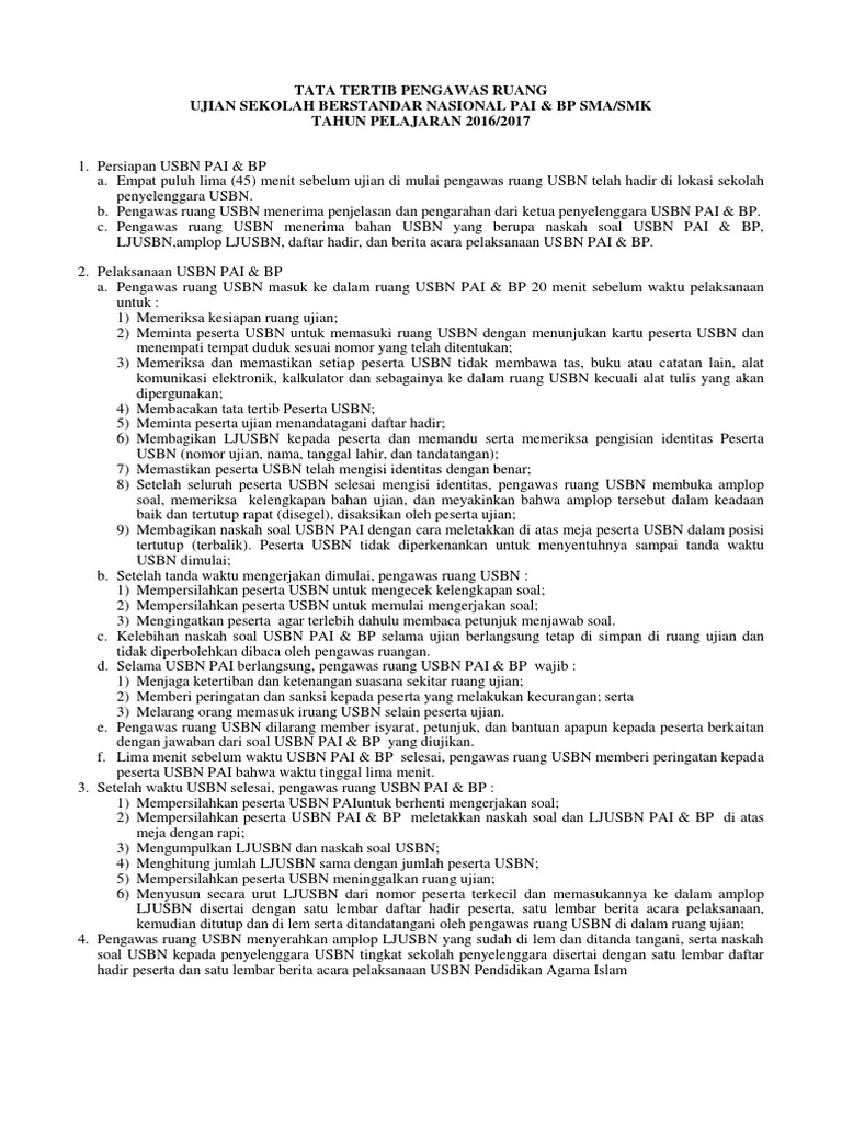 Tata Tertib Pengawas Usbn Tahun Pelajaran 2018 2019