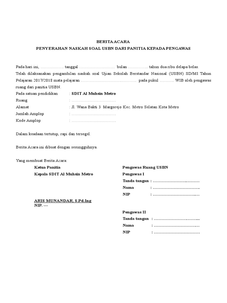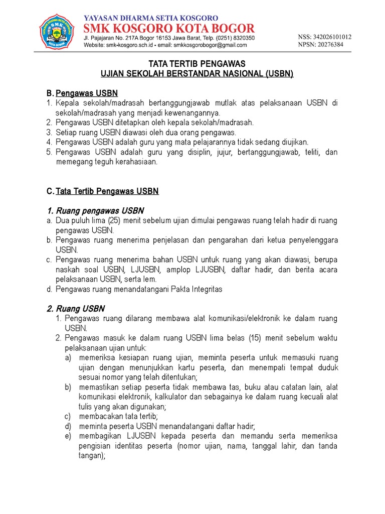 Instrumen Pelaksanaan Usbn Smk Nahdlatul Ulama Balikpapan Smk Nu