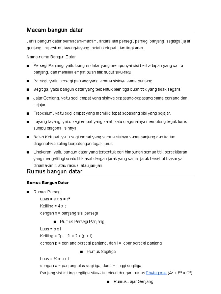 Macam Macam Rumus Luas Dan Volume Bangun Datar