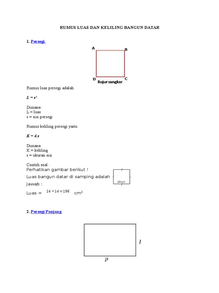 Rumus Luas Dan Keliling Bangun Datar Matematika