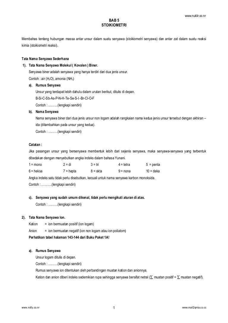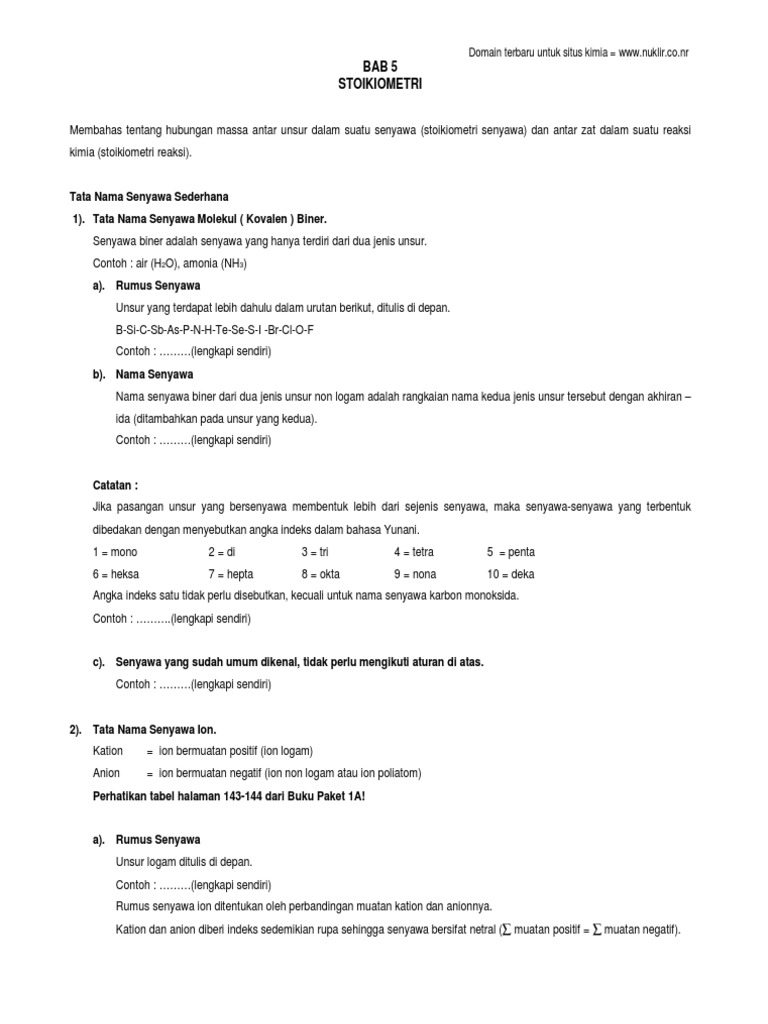 Lembar Kerja Siswa Materi Tatanama Senyawa Kimia K13 Recommended