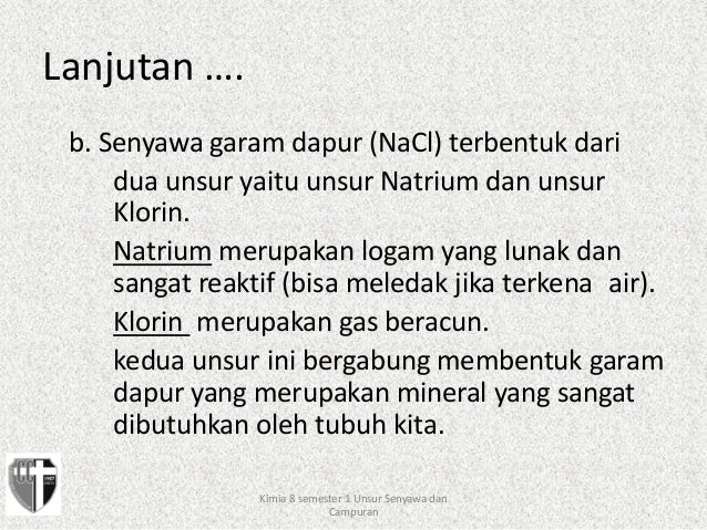 Dalam makalah ini kami membahas tentang kimia unsur yang kami buat berdasarkan refrensi yang kami ambil dari berbagai sumber diantaranya buku dan. Garam garaman utama yang terdapat dalam air laut adalah klorida 55. Rumus kimia disebut juga rumus molekul karena.