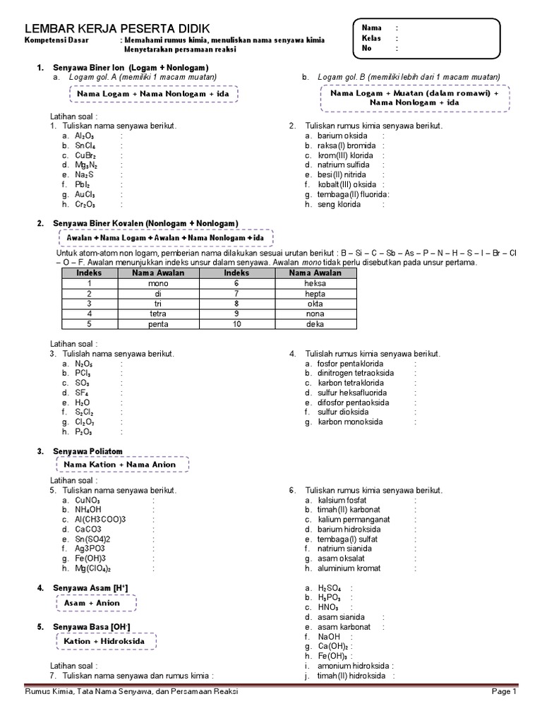 Lembar Kerja Tata Nama Dan Persamaan Reaksi